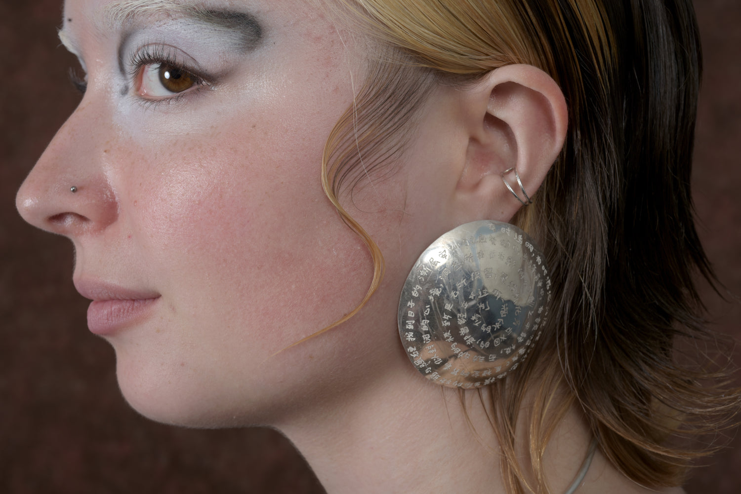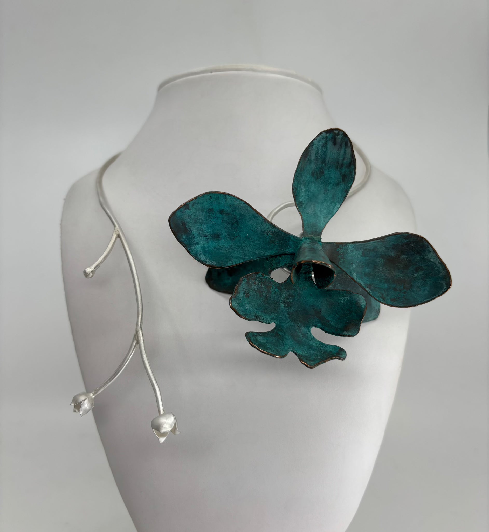 Made with patinated copper, and 925 Silver. This wearable object explores ideas of prayer, belief, and the act of wearing religious jewelry.