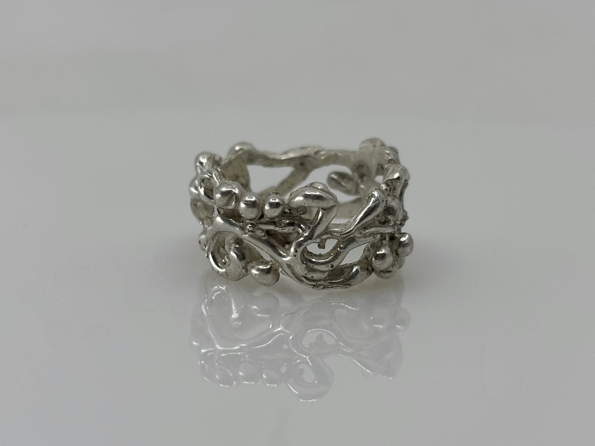 Made with 925 Silver, casted in cuttlefish bone. An experimentation with natural shapes and materials.