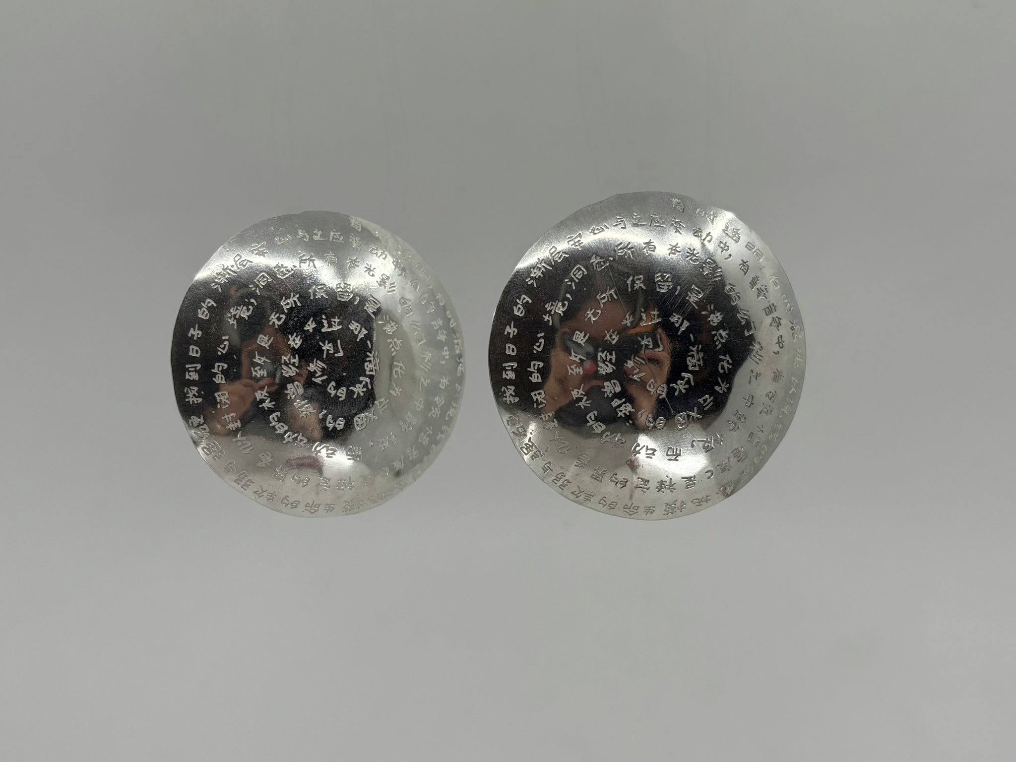 Made with 925 silver, with my mother's poetry etched onto the surface.